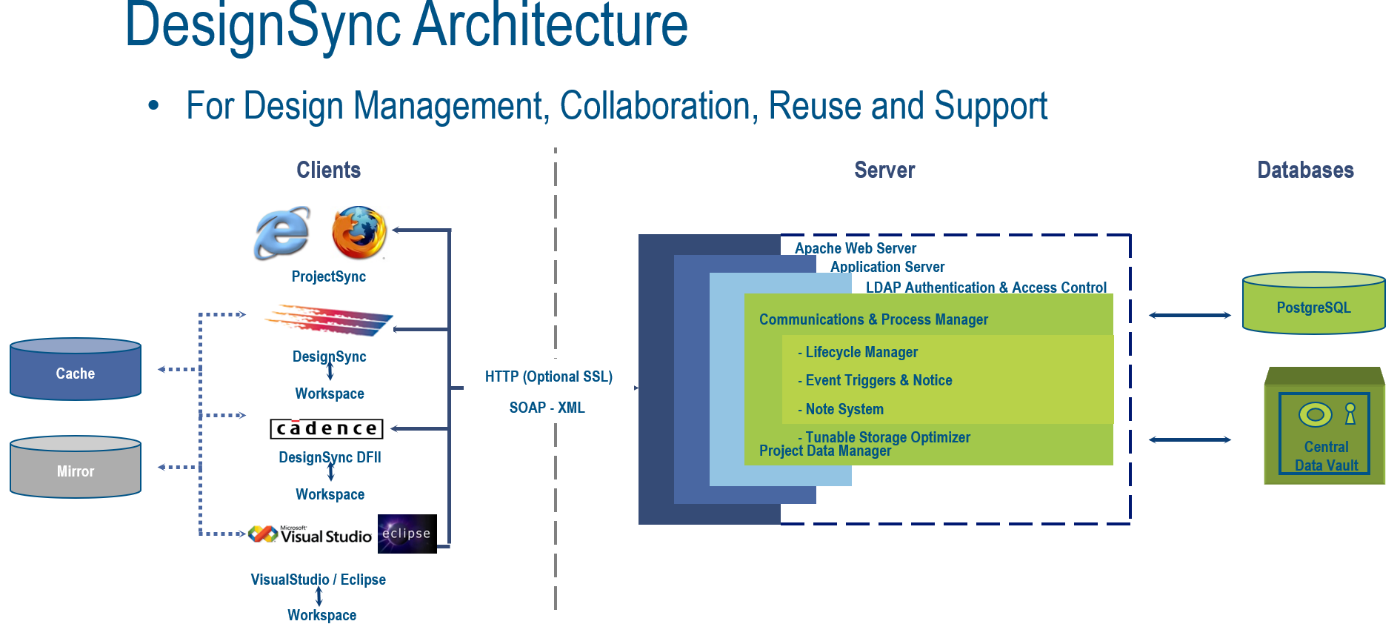 ENOVIA DesignSync專為管理半導體設計資料而生,有助於針對大型多地區設計專案,進行分散式IC設計資料管理。設計資料可直接從電子設計自動化(EDA)工具中擷取,並形成層級化資料結構。其分散式架構提供位於多地區的設計團隊具高度安全性及整合性的存取權限。該層級化結構以「模組」機制直接支援IP及SoC的模組式設計方法,便於快速設計IC。DesignSync簡化和加快將設計子元件整合到SoC設計中的進度,從而提升設計的重複利用率。DesignSync易於與各類EDA工具整合,大幅強化設計便易性。相對於一般的設計資料管理(DDM)系統而言具有顯著優勢。這樣也能提高IP重複利用,縮短產品上市進程,簡化複雜問題的管理,並最終有助於提高設計專案的投資回報