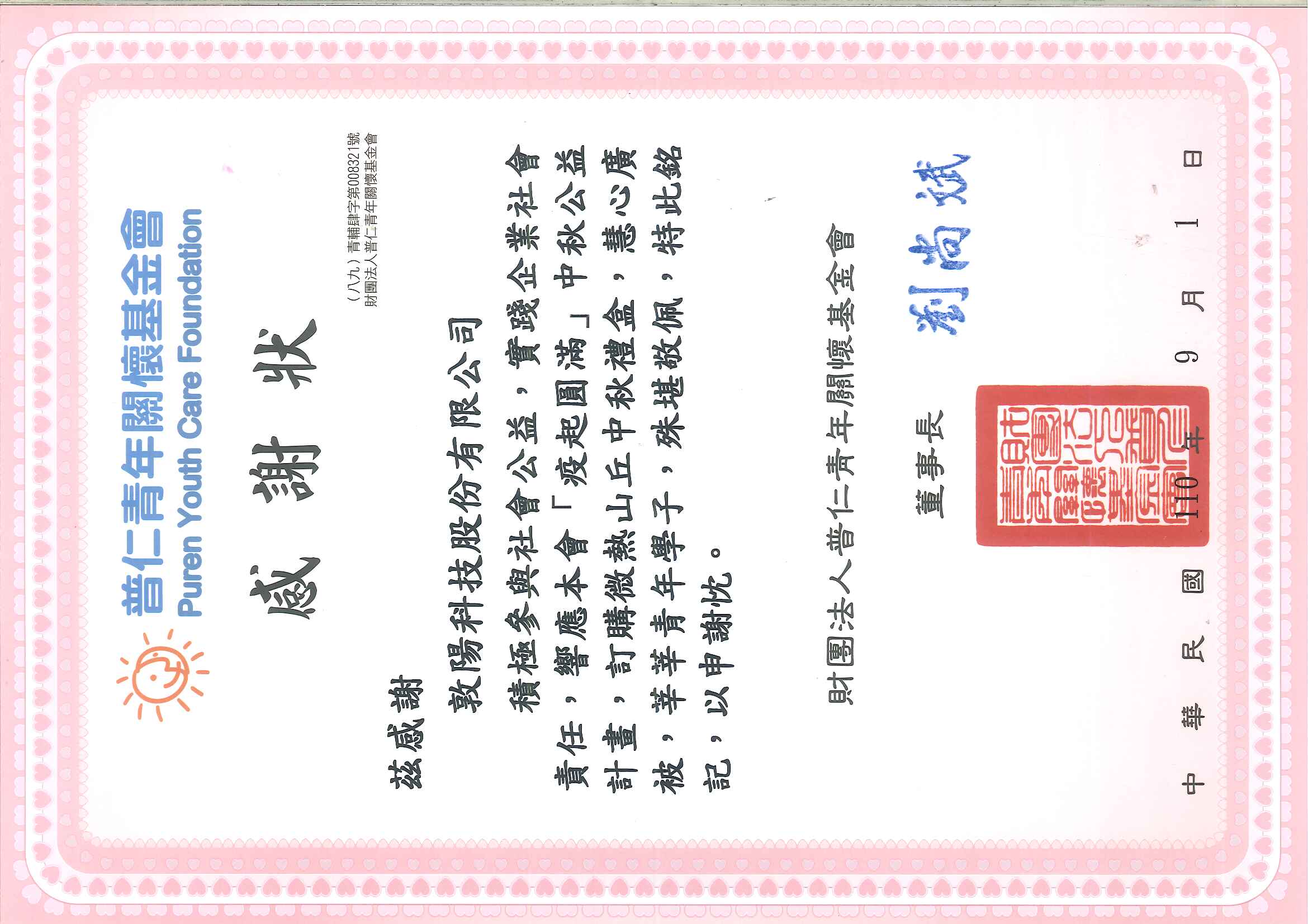 敦陽集團於2021年響應財團法人普仁青年關懷基金會與微熱山丘