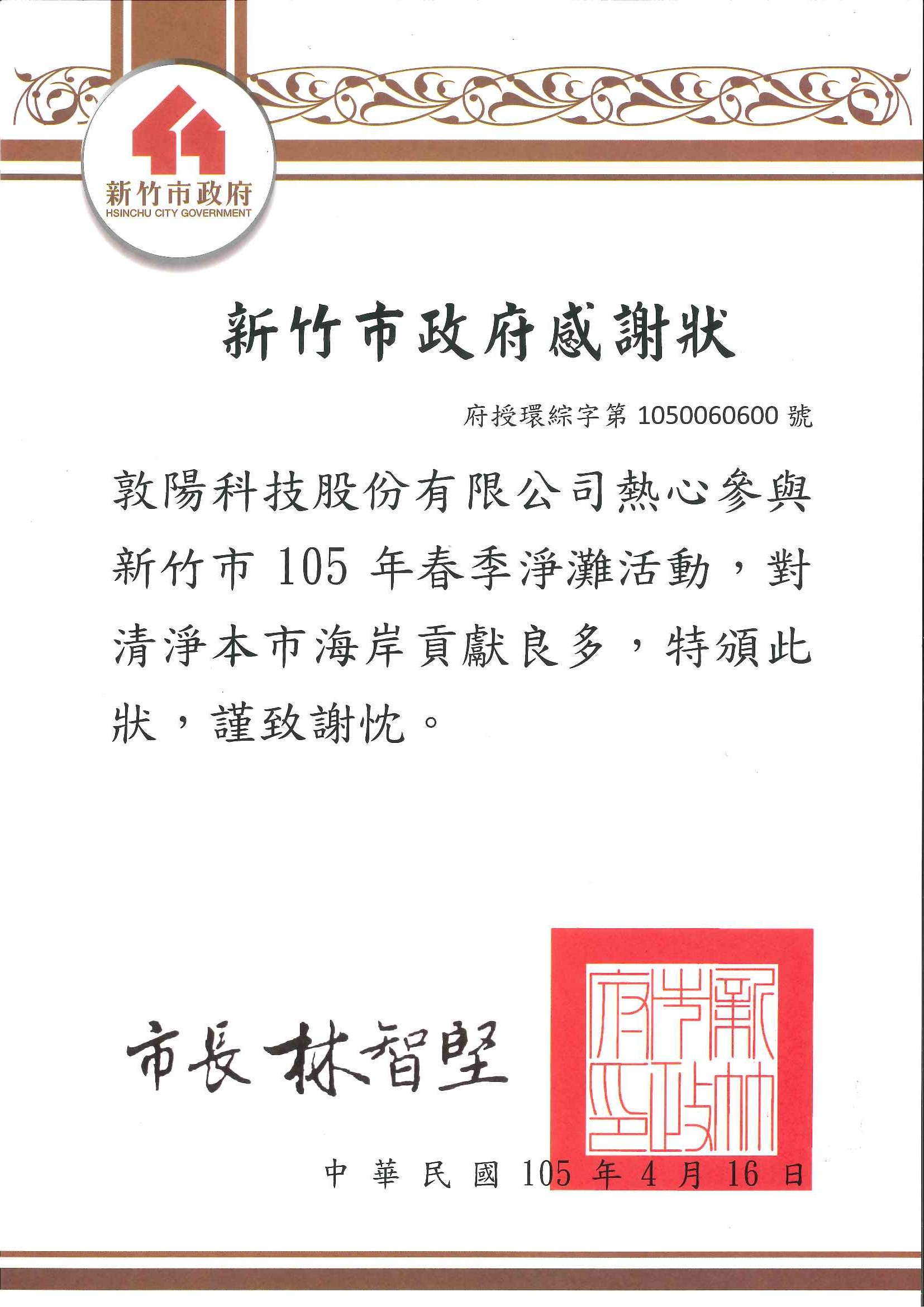 敦陽科技參加新竹市 105年度 南寮春季淨灘活動 - 公告