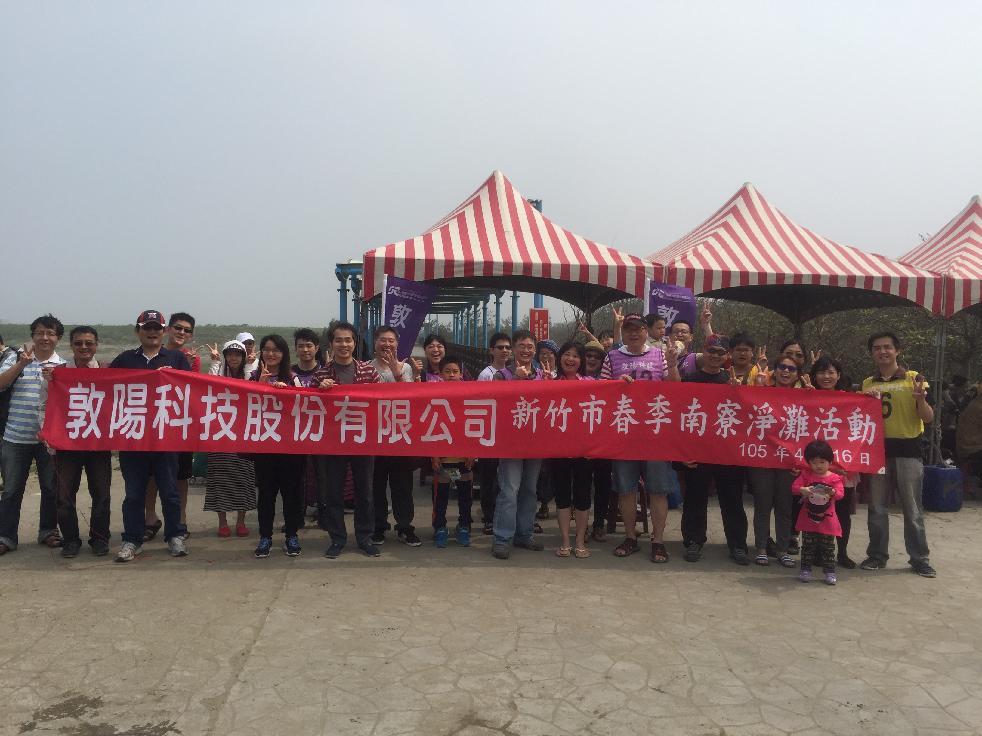 本著取之社會 , 用之社會的理念 。 並響應政府節能減碳 , 創造綠能生態環境 , 許一 個乾淨的海岸承諾. 敦陽科技 與福 委會今年共同邀請各位同仁參加新竹市政府舉辦 105 年 南寮 春季淨灘活動並 配合行政院環境保護署訂於4月至6月期間為地球環境季,希望建立公司同仁對環境保護概念及共同關懷環境問題,參加可以親近自然之淨灘活動,藉以推廣愛護與親近鄉土珍貴海洋資源的環保概念,向社會大眾示範可以節能減碳的休閒活動,達到全民環境教育之目的。