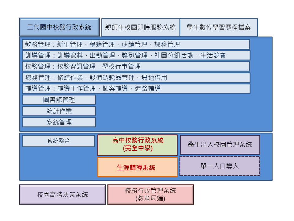 「第二代國中校務行政系統」系統功能歸納如下: